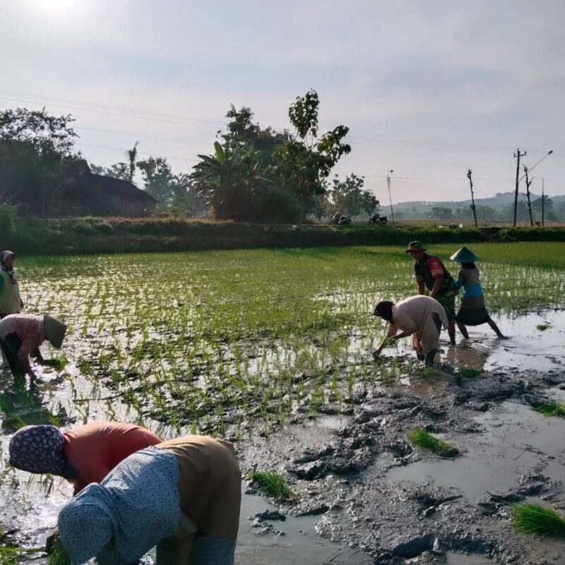 Babinsa Kadengan Dukung Ketahanan Pangan Dengan Dampingi Petani Tanam Padi