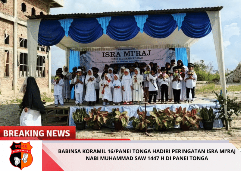Kehadiran Serda Sukanto dalam kegiatan tersebut mewakili Danramil 16/Panei Tonga. Acara peringatan Isra Mi’raj ini mengusung tema “Isra Mi’raj Nabi Muhammad SAW Momentum Penyucian Hati dan Perbaikan Diri Menuju Pribadi yang Lebih Baik” dan berlangsung di tanah wakaf pembangunan Masjid Al-Muttakim, Karang Anom Bawah, Kelurahan Panei Tonga, Kecamatan Panei.