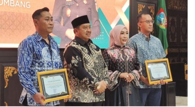 Diakhir acara, Bupati Jombang Warsubi menyerahkan Piagam Penghargaan yang