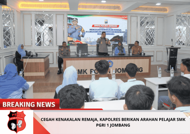 Buserpantura.id | Jombang — Kapolres Jombang AKBP Ardi Kurniawan, S.H., S.I.K., CPHR memberikan arahan kepada pelajar SMK PGRI 1 Jombang terkait pencegahan kenakalan remaja di lingkungan sekolah, pada Selasa (10/2/2026) pagi.