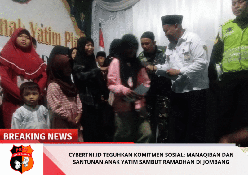 Buserpantura.id | JOMBANG – Menyambut datangnya Bulan Suci Ramadhan, media siber CyberTNI.id kembali menunjukkan komitmennya yang konsisten dalam kegiatan sosial dan keagamaan melalui agenda tahunan Manaqiban dan Santunan Anak Yatim Piatu. Kegiatan ini bukan sekadar tradisi, melainkan wujud nyata kepedulian dan pengabdian CyberTNI.id kepada masyarakat, khususnya di wilayah Jombang dan sekitarnya.