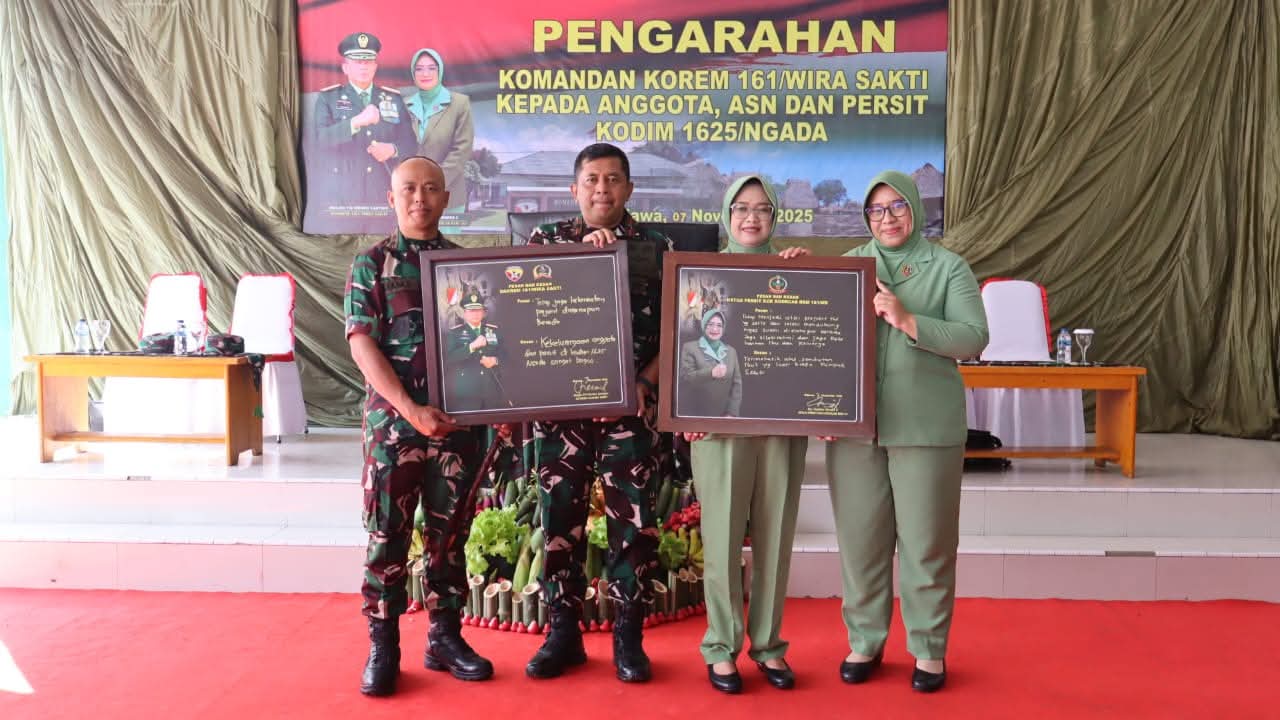 Buserpantura.id | Ngada, Sabtu 8 November 2025 – Komandan Korem 161/Wira Sakti Brigjen TNI Hendro Cahyono beserta Ketua Persit Kartika Chandra Kirana Koorcab Rem 161 PD IX/Udayana Ny. Kartika Hendro Cahyono, melaksanakan kunjungan kerja ke Makodim 1625/Ngada.