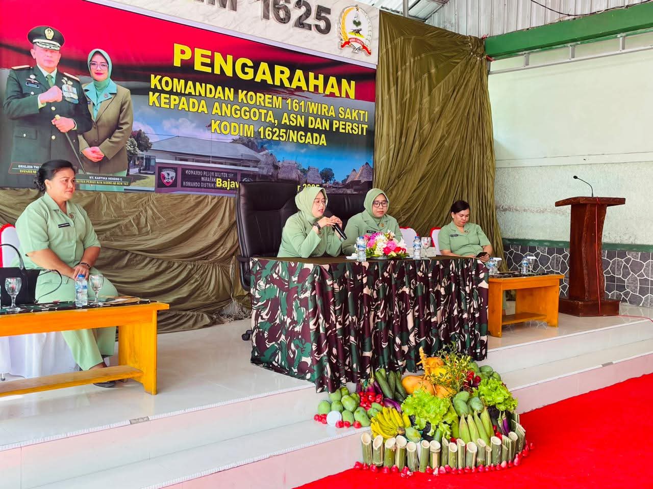 Sementara itu, Ketua Persit KCK Koorcab Rem 161 PD IX/Udayana, Ny. Kartika Hendro Cahyono, juga memberikan pengarahan kepada anggota Persit Kodim 1625/Ngada. Dalam kesempatan tersebut, beliau menekankan pentingnya peran Persit dalam mendukung tugas suami serta menjaga keharmonisan rumah tangga.