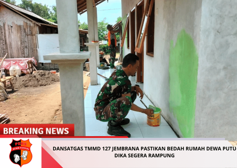 Buserpantura.id | Jembrana – Memasuki hari-hari krusial pelaksanaan TNI Manunggal Membangun Desa (TMMD) Ke-127 Tahun 2026, Komandan Satuan Tugas (Dansatgas) TMMD Kodim 1617/Jembrana Letkol Inf Sy. Gafur Thalib terus memantau secara intensif setiap sasaran fisik yang dikerjakan. Salah satu fokus utama adalah program bedah rumah milik Bapak Dewa Putu Dika di Banjar Yeh Buah, Desa Penyaringan, Kecamatan Mendoyo.