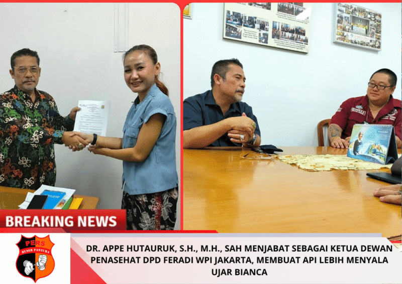 “Saya telah berkomunikasi dg Dr. Appe Hutauruk, S.H., M.H. berkaitan kesediaan beliau menjabat sebagai Ketua Dewan Penasehat Dewan Dewan Pimpinan Daerah ( DPD ) FERADI WPI Jakarta, dan Puji Tuhan beliau bersedia, dengan hadirnya beliau di Jajaran Pengurus DPD FERADI WPI JAKARTA akan membuat api bantuan hukum lebih menyala lagi” Ujar Harriani Bianca Daryana, C.PL. Ketua DPD FERADI WPI Jakarta.