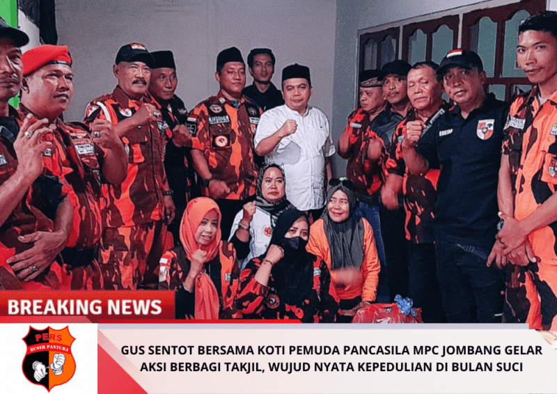 Buserpantura.id | JOMBANG – Semangat kepedulian dan solidaritas sosial kembali ditunjukkan oleh keluarga besar Pemuda Pancasila. Dalam momentum bulan suci Ramadan, Minggu (22/02/2026) pukul 16.45 WIB, H. Syarif Hidayatullooh yang akrab disapa Gus Sentot bersama KOTI (Komando Inti) MPC Pemuda Pancasila Kabupaten Jombang menggelar aksi berbagi takjil kepada masyarakat.