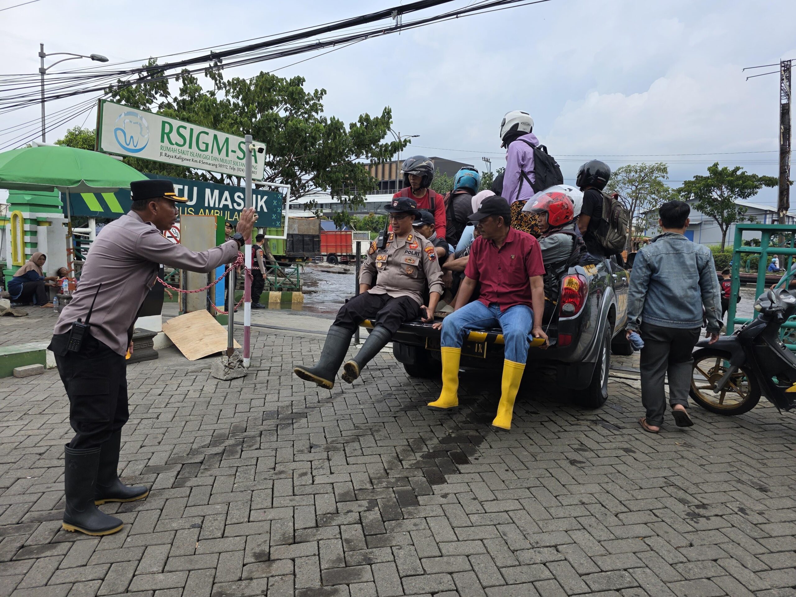 “Personel juga kami arahkan membantu pasien dan karyawan RSI Sultan Agung yang kesulitan keluar-masuk area rumah sakit akibat banjir. Kami gunakan mobil double cabin D-Max untuk mobilisasi warga,” ujar AKBP Tri.