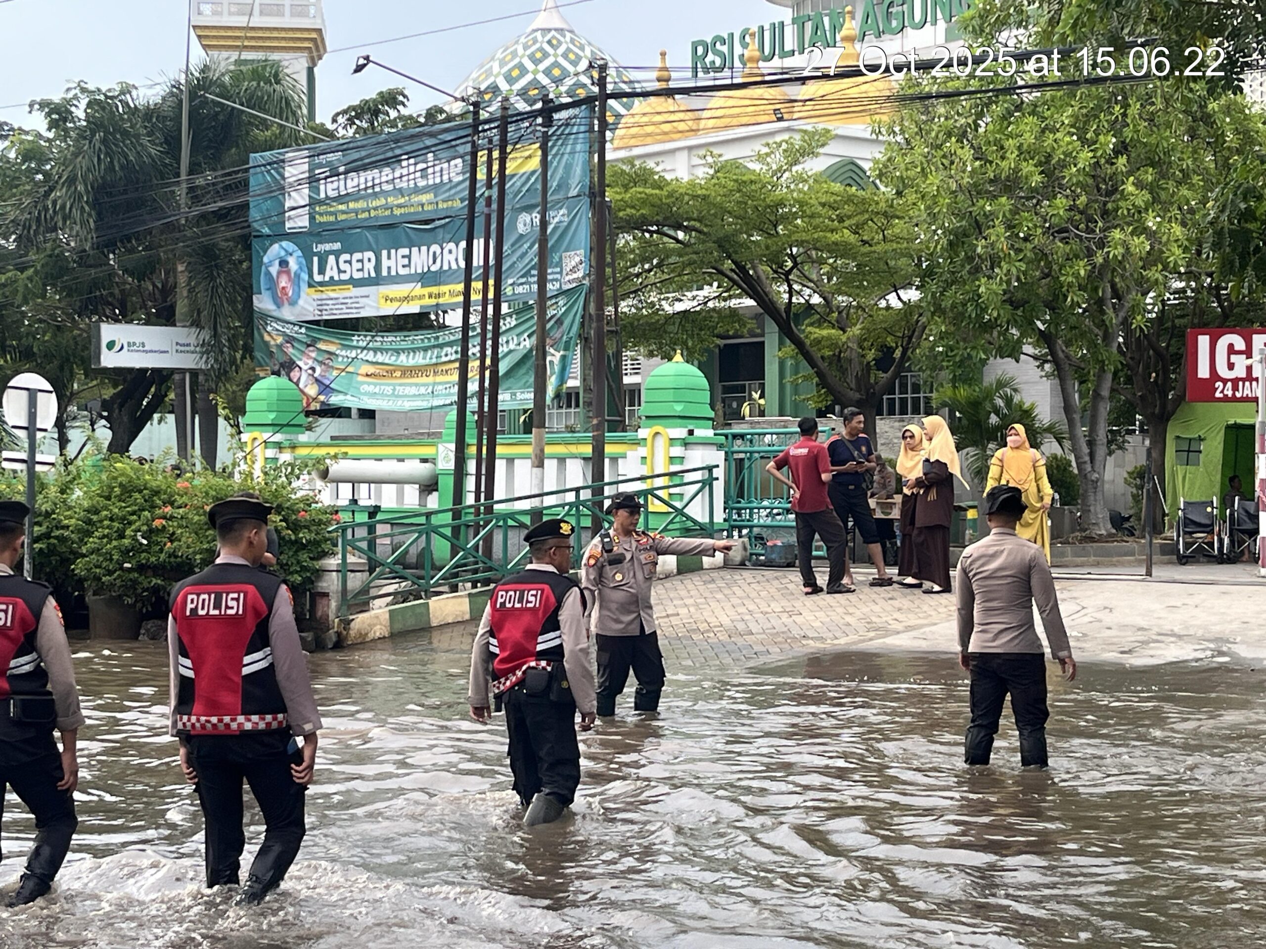 AKBP Tri Wisnugroho menjelaskan, kegiatan difokuskan pada pengaturan arus lalu lintas agar kendaraan tetap dapat melintas dengan aman di tengah genangan air yang mencapai ketinggian sekitar 30 sentimeter. Selain itu, petugas juga membantu pengendara yang kendaraannya mogok akibat mesin terendam.