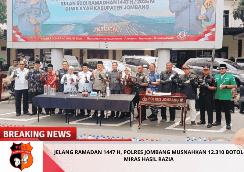 Buserpantura.id | Jombang – Menjelang Ramadan 1447 Hijriah, Polres Jombang memusnahkan ribuan botol minuman keras (miras) hasil razia. Total sebanyak 12.310 botol dimusnahkan sebagai bentuk komitmen menjaga kondusivitas wilayah Kota Santri.