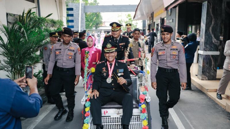 “Dengan tradisi seperti ini, kami ingin memberikan kesan baik dan membekas bagi rekan-rekan yang sudah puluhan tahun bertugas di Polri. Pelepasan mereka tidak hanya dilakukan begitu saja, namun harus dilakukan dengan penuh penghormatan,” kata AKBP Ardi Kurniawan.