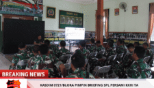 Buserpantura.id | Blora, 26 Maret 2026 – Kodim 0721/Blora melaksanakan kegiatan Briefing SPL Persami Korps Kadet Republik Indonesia (KKRI) Kodam IV/Diponegoro Tahun Anggaran 2026. Kegiatan tersebut dipimpin oleh Kepala Staf Kodim (Kasdim) 0721/Blora, Mayor Inf Bani, bertempat di Aula Makodim 0721/Blora, Jl. Pemuda No. 44 Blora.