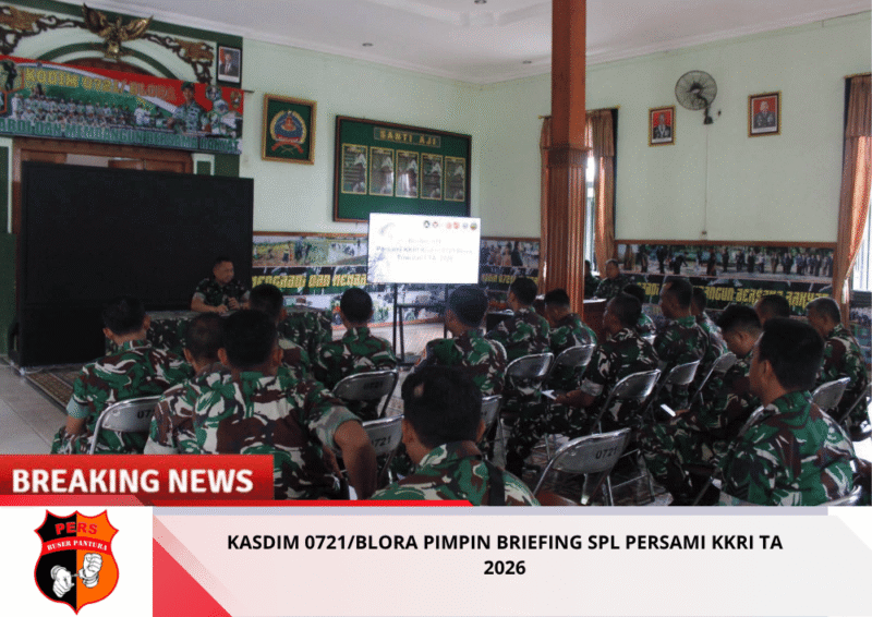 Buserpantura.id | Blora, 26 Maret 2026 – Kodim 0721/Blora melaksanakan kegiatan Briefing SPL Persami Korps Kadet Republik Indonesia (KKRI) Kodam IV/Diponegoro Tahun Anggaran 2026. Kegiatan tersebut dipimpin oleh Kepala Staf Kodim (Kasdim) 0721/Blora, Mayor Inf Bani, bertempat di Aula Makodim 0721/Blora, Jl. Pemuda No. 44 Blora.
