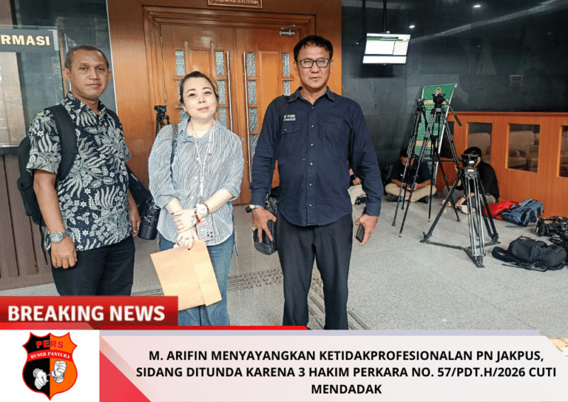 M. ARIFIN MENYAYANGKAN KETIDAKPROFESIONALAN PN JAKPUS, SIDANG DITUNDA KARENA 3 HAKIM PERKARA NO. 57/Pdt.H/2026 CUTI MENDADAK