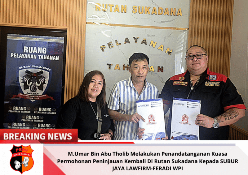 Buserpantura.id| Rumah Tahanan ( Rutan ) IIB Sukadana, Lampung Timur, Senin 2 Februari 2026 — sekitar pukul 12.00 WIB siang, Tim Firma Hukum Subur Jaya dan Rekan – FERADI WPI hadir di Rutan Kelas IIB Sukadana Lampung Timur untuk menjenguk sekaligus penandatanganan surat kuasa untuk Pengajuan Upaya Hukum Luar Biasa Peninjauan Kembali ( PK ) ke Mahkamah Agung melalui Pengadilan tingkat pertama yang mengadili / memutus perkara yaitu PN Sukadana Lampung Timur.