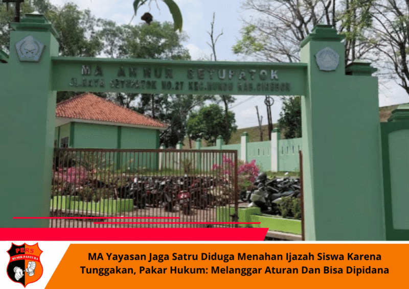 Buserpantura.id | CIREBON, Selasa 21 Oktober 2025 — Dugaan praktik penahanan ijazah oleh pihak Madrasah Aliyah (MA) Yayasan Jaga Satru, Desa Setu Patok, Kecamatan Mundu, Kabupaten Cirebon, menuai sorotan tajam. Tindakan tersebut dilakukan dengan dalih adanya tunggakan biaya pendidikan dari wali murid.