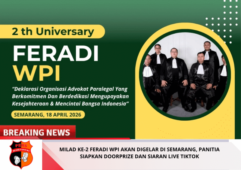 Buserpantura.id | SEMARANG – FERADI WPI merencanakan pelaksanaan Milad ke-2 yang akan digelar di Semarang pada Sabtu, 18 April 2026, mulai pukul 19.00 WIB hingga selesai. Agenda peringatan hari jadi organisasi tersebut disiapkan dalam konsep yang menarik oleh panitia, termasuk menghadirkan doorprize, mengundang sejumlah tokoh internal dan akademisi, serta membuka akses partisipasi secara langsung maupun melalui siaran langsung di platform TikTok.