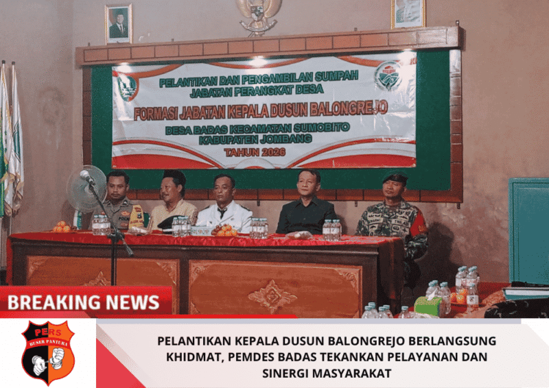 Buserpantura.id | JOMBANG — Pemerintah Desa Badas, Kecamatan Sumobito, Kabupaten Jombang resmi melantik dan mengambil sumpah jabatan Kepala Dusun Balongrejo pada Rabu malam (28/04/2026). Jabatan tersebut kini resmi diemban oleh Dimas Dwi Andi Alfian setelah melalui tahapan seleksi sesuai mekanisme pemerintahan desa.