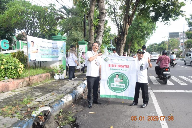Buserpantura.id | JOMBANG, PERHUTANI (05/01/2026) — Perhutani Kesatuan Pemangkuan Hutan (KPH) Jombang awali pekerjaan tahun 2026 ,bagikan 2026 plances bibit stek sambung buah buahan ke, masyarakat. dengan tema “Sedekah Oksigin Awali Pekerjaan Tahun 2026”,kegiatan berlangsung di Kantor Perhutani KPH Jombang Kabupaten Jombang, pada Senin (05/01).