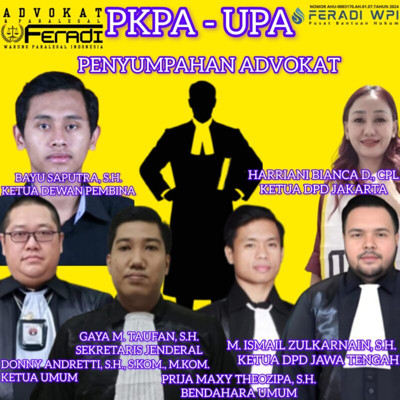 Melalui Perwakilan DPD FERADI WPI JAKARTA DAN DPD FERADI WPI JAWA TENGAH, PKPA & UPA untuk mencetak Advokat yang Profesional dan Berkualitas 2 ( dua ) Universitas tersebut telah melakukan MOU dengan FERADI WPI untuk menyelenggarakan PENDIDIKAN KHUSUS PROFESI ADVOKAT yang Berkualitas dengan pengajar terbaik di bidang hukum. Setelah menempuh PKPA peserta akan mengikuti UJIAN PROFESI ADVOKAT ( UPA ) lalu setelah itu mengikuti Magang Advokat dimana akan di fasilitasi oleh FIRMA HUKUM SUBUR JAYA DAN REKAN yang cabangnya tersebar hampir di seluruh Indonesia, Firma Hukum Subur jaya terdaftar di Kemenkumah R.I. berbadan hukum Firma dengan Nomor AHU-0001173-AH.01.18 Tahun 2024. Yang akan menjadi wadah bagi Para Calon Advokat yang FERADI WPI yang telah mengikuti PKPA DAN Lulus UPA untuk Magang, sehingga Para Calon Advokat FERADI WPI tidak kesulitan mencari tempat magang.