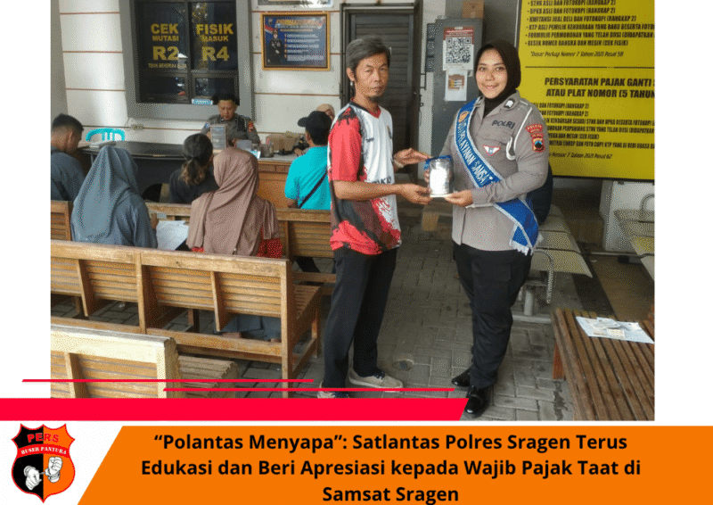 “Polantas Menyapa”: Satlantas Polres Sragen Terus Edukasi dan Beri Apresiasi kepada Wajib Pajak Taat di Samsat Sragen