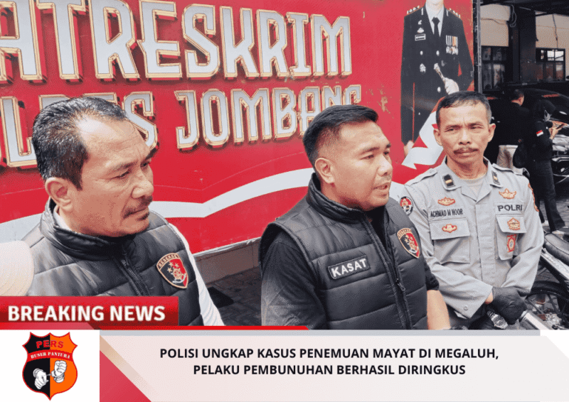Buserpantura.id | JOMBANG — Misteri penemuan sesosok mayat yang menggegerkan warga di wilayah Kecamatan Megaluh akhirnya terungkap. Polres Jombang secara resmi membeberkan kronologi kejadian, barang bukti, hingga identitas tersangka dalam konferensi pers yang digelar di halaman Mapolres Jombang.