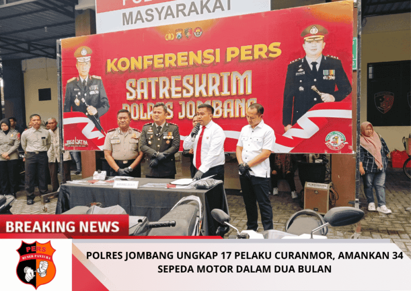 Buserpantura.id | Jombang, 26 Januari 2026 — Polres Jombang berhasil mengungkap kasus pencurian kendaraan bermotor (curanmor) dalam kurun waktu dua bulan terakhir. Sebanyak 17 tersangka berhasil diamankan, dengan barang bukti 34 unit sepeda motor.