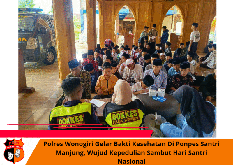 Buserpantura.id | Wonogiri, Rabu 22 Oktober 2025 – Dalam rangka memperingati Hari Santri Nasional tahun 2025, Polres Wonogiri melalui Seksi Kedokteran dan Kesehatan (Sidokkes) melaksanakan kegiatan bakti kesehatan (baktikes) di Pondok Pesantren Santri Manjung, Kabupaten Wonogiri, pada Rabu (22/10/2025).