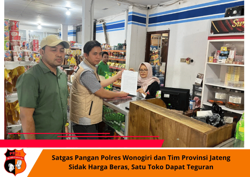 Buserpantura.id | Wonogiri, Jumat 24 Oktober 2025 – Untuk menjaga stabilitas harga pangan di pasaran, Satgas Pangan Polres Wonogiri bersama Satgas Pengendalian Harga Beras Provinsi Jawa Tengah serta dinas terkait Pemerintah Kabupaten Wonogiri melaksanakan pengecekan harga beras di sejumlah pasar tradisional, distributor, dan retail modern di wilayah Wonogiri, Jumat (24/10/2025).