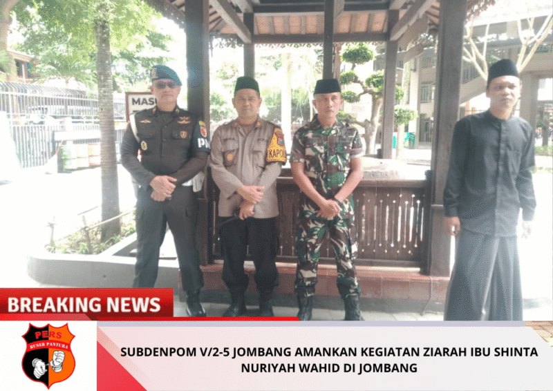 CyberTNI.id | Jombang – Subdenpom V/2-5 Jombang menunjukkan profesionalisme dan kesiapsiagaannya dalam melaksanakan pengamanan dan pengawalan (Wallakir) kegiatan ziarah Ibu Shinta Nuriyah Wahid di wilayah Kabupaten Jombang, Sabtu (28/2/2026). Seluruh rangkaian kegiatan berlangsung aman, tertib, dan lancar berkat sinergi aparat gabungan.