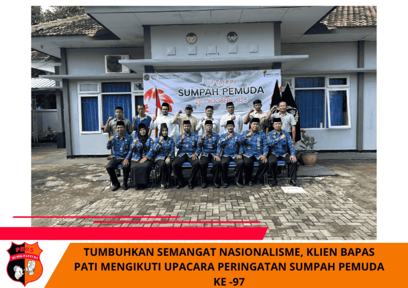 Buserpantura.id | Pati, 28 Oktober 2025 – Dalam rangka memperingati Hari Sumpah Pemuda ke-97, Balai Pemasyarakatan (Bapas) Kelas II Pati melaksanakan kegiatan upacara bendera yang diikuti oleh seluruh pegawai dan klien Pemasyarakatan yang sedang menjalani masa bimbingan di Bapas Pati.