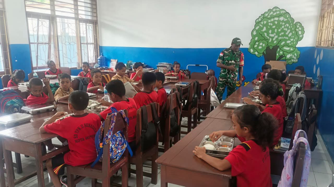 Buserpantura.id | Jayapura ~ Komitmen Tentara Nasional Indonesia Angkatan Darat (TNI AD) dalam mendukung peningkatan kualitas kesehatan dan gizi anak-anak usia sekolah terus diwujudkan melalui aksi nyata di lapangan. Babinsa Koramil 1701-02/Jayapura Utara (Japut) melaksanakan pendampingan Program Pemberian Makan Bergizi (PMB) di sejumlah sekolah dasar di Distrik Jayapura Utara, Rabu (14/1/2026).