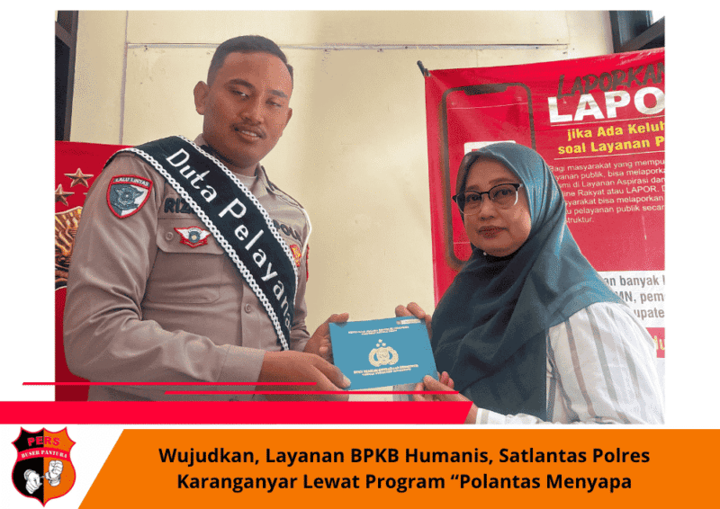 Buserpantura.id | Karanganyar, Rabu,29 Oktober 2025 – Untuk mendekatkan diri kepada masyarakat serta memberikan edukasi terkait pelayanan, Satlantas Polres Karanganyar terus menghadirkan inovasi pelayanan publik yang cepat, transparan, dan berorientasi pada kenyamanan masyarakat. Melalui program unggulan bertajuk “Polantas Menyapa”, jajaran petugas Satlantas kini hadir lebih dekat dan humanis dalam memberikan layanan di unit loket Bukti Pemilikan Kendaraan Bermotor (BPKB).
